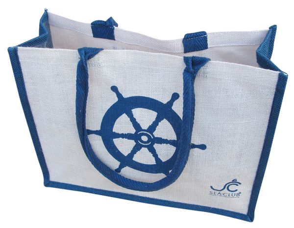 Diese Strandtasche aus blau-weißem Jutegarn ist der perfekte Begleiter für den Tag am Meer. Die robuste, handgewebte Konstruktion bietet ausreichend Platz für Handtücher, Sonnencreme und andere Strandutensilien. Mit dem SEA CLUB-Design macht sie auch optisch einiges her.